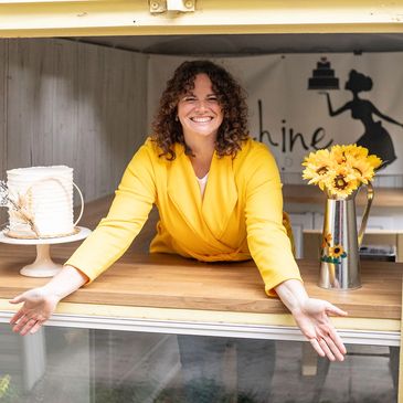 Bringing sweets to local community markets in the yellow cake trailer.