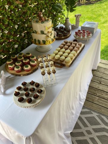 Displays of favourite sweets such as cupcakes, cake pops, tarts, cheesecakes, squares, cookies, macarons and more.